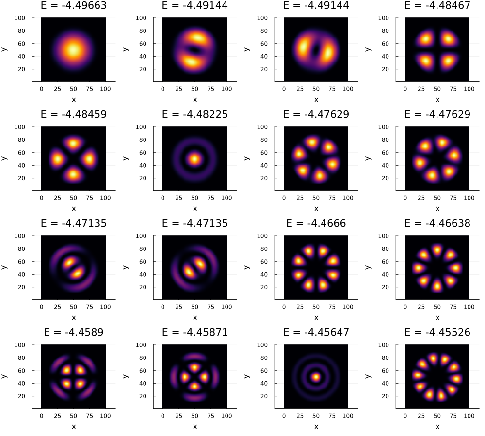 eig = diagonalize(H, :krylovkit, n=16) # Compute only 9 eigenvalues with smallest real part